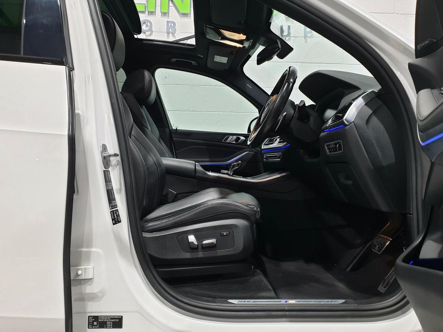 First Aid Kit and Warning Triangle, Follow Me Home Headlight Function, Footwell Lights - Front, Front Grille Bars - Pearlescent Chrome, Head Airbags - For First and Second Row Seats, Head Restraints - Front Anti-Whiplash, Headlining - Anthracite, Heated Windscreen Washer Jets, HiFi Loudspeaker System, Interior Light - Rear Centre, Interior Trim - Aluminium Tetragon, Knee Airbag, LED Fog Lights, LED Headlights, LED Rear Lights, Light Inside Glove Compartment, Lockable Glove Compartment, Locking Wheel Bolts, Luggage Compartment - Light, Luggage Compartment Floor Panel with Integral Storage Tray, M Aerodynamic Bodystyling, M Designation on Front Side Panels - Left and Right, M Leather Steering Wheel, M Specific Floor Mats, M Specific Key, M Specific Pedals, M Specific Steering Wheel, M Sport Braking System, M Sport Package, Make-Up Mirror Lights, Mechanical Childproof Lock - Rear Doors, Multi-Function Controls for Leather Steering Wheel, Multifunctional Hooks, Non Smokers Package, OBC - On Board Computer, Oil Sensor For Level and Grade, Outer and Centre Air Intakes on Front Bumper - High-Gloss Black with Pearlescent Chrome Finish, PDC - Park Distance Control - Front and Rear, Parking Assistant, Passenger Seat Airbag Deactivation - Front, Passenger Seat Occupancy Sensor For Driver and Passenger Side, Passive Protection for Pedestrians, Power Sockets 12v - 2x Centre Console - 1x Luggage Compartment, Rain Sensor with Automatic Headlight Activation and Windscreen Wiper Control, Reading Lights - Front, Run-Flat Tyres, Safety Battery - Terminal Clamp, Seat Adjustment - Front Electric with Driver Memory, Seat Back with Flap Pocket, Seat Belts Front and Rear - Seat Belt Tensioner - Front and Outer Rear Seats - Belt Force Limit, Seat Heating for Driver and Front Passenger, Side Elements - High Gloss Black, Side Impact Protection, Side Window Graphics - Satin Aluminium, Speed Limit Display, Speed Limiting Function, Split Folding Rear Seats 40-20-40 Configuration, Sport Automatic Transmission, Sport Seats for Driver and Front Passenger, Start-Stop Toggle - Diamond-Shaped Trim Finisher in Pearl Chrome, Storage Tray and Compartment with Lid in Centre Console, Sun Visors with Illuminated Vanity Mirrors, TPMS - Tyre Pressure Monitoring System, Tailgate Automatic - Two Part Top-Hinged Section Which Can Be Opened Separately and Manual Bottom-Hinged Section, Telephony with Wireless Charging, Third Brake Light - Spoiler, Toolkit Located in Luggage Compartment, Two Tone Horn, USB Connection - USB Type A 1.5A in Cupholder - USB Type C 3A in Centre Armrest, Welcome Light Carpet, WiFi Hotspot Preparation, X5 on Tailgate - Left, iDrive Touch Controller with Shortcut Buttons, xDrive Designation on Tailgate - Right, 20GB Hard Disc Drive HDD Memory, 20in Alloy Wheels - M light Star-Spoke Style 740 M Bicolour with Mixed Tyres and Run Flat Tyres, Active Air Stream Kidney Grille, Active Guard Plus, Adaptive 2-Axle Air Suspension, Adaptive Air Flap Control Bar - High-Gloss Black, Air Conditioning - Automatic with 2.5 Zone Control, Airbags - Driver - Front Passenger- Rear and Side, Alarm System - Thatcham 1 with Remote Control and Engine Immobiliser, Armrest - Front and Rear Integrated into Door Trim, Attentiveness Assistant, Automatically Dimming Rear View Mirror, BMW Connected Package Professional, BMW ConnectedDrive Online Services, BMW Emergency Call, BMW Gesture Control, BMW Individual High-Gloss Shadowline, BMW Individual Roof Rails High-Gloss Shadow Line, BMW Live Cockpit Professional, BMW TeleServices, Brake Force Display, Brake System, Brake-Pad Wear Indicator, Centre Armrest - Rear - Foldable with 2 Cupholders and Storage Compartment, Centre Console Includes Storage Compartment, Centre Lock Switch - Driver and Front Passenger Door, Child Seat ISOFIX Attachment - Outer Rear Seats - includes Top Tether, Closing System with Central Locking, Compartment in Front of Cupholder, Crash Sensor - Activating Central Locking Release - Hazard Warning Lights - Fuel Cut Off - Interior Lighting and Activation of the Safety Battery Clamp, Cruise Control with Brake Function, Cup Holders - Front x2 and Rear x2, DAB Tuner, DSC - Dynamic Stability Control - Stabilises the Vehicle in Extreme Situations - Controls Traction, Daytime Running Lights - LED, Deformation Zones - Front and Rear, Door Pockets - Front and Rear, Door Sill Finishers with Illuminated - BMW Designation - Front and Rear, Door Sill Inlays - BMW M Designation Illuminated, Drive Performance Control with ECO PRO - Comfort and Sport, Dynamic Brake Lights with LED Technology, EPS - Electric Power Steering with Servotronic, Electric Windows - Front and Rear with Open-Close Fingertip Control - Anti-Trap Facility and Comfort Closing Function, Electrical Steering Column with Adjustable Height and Length, Electro-Mechanical Parking Brake with Automatic Drive-Away Release and Auto-Hold Function, Enhanced Bluetooth Telephone Preparation with Wireless Charging, Exhaust Tailpipes - Single - Left and Right - Chrome, Expanded Exterior Mirror Package, Exterior Mirror Housing - Body Colour, Exterior Mirrors - Electrically Adjustable - Automatic Parking Function - Heated and Drivers Anti-Dazzle, Favourite Buttons