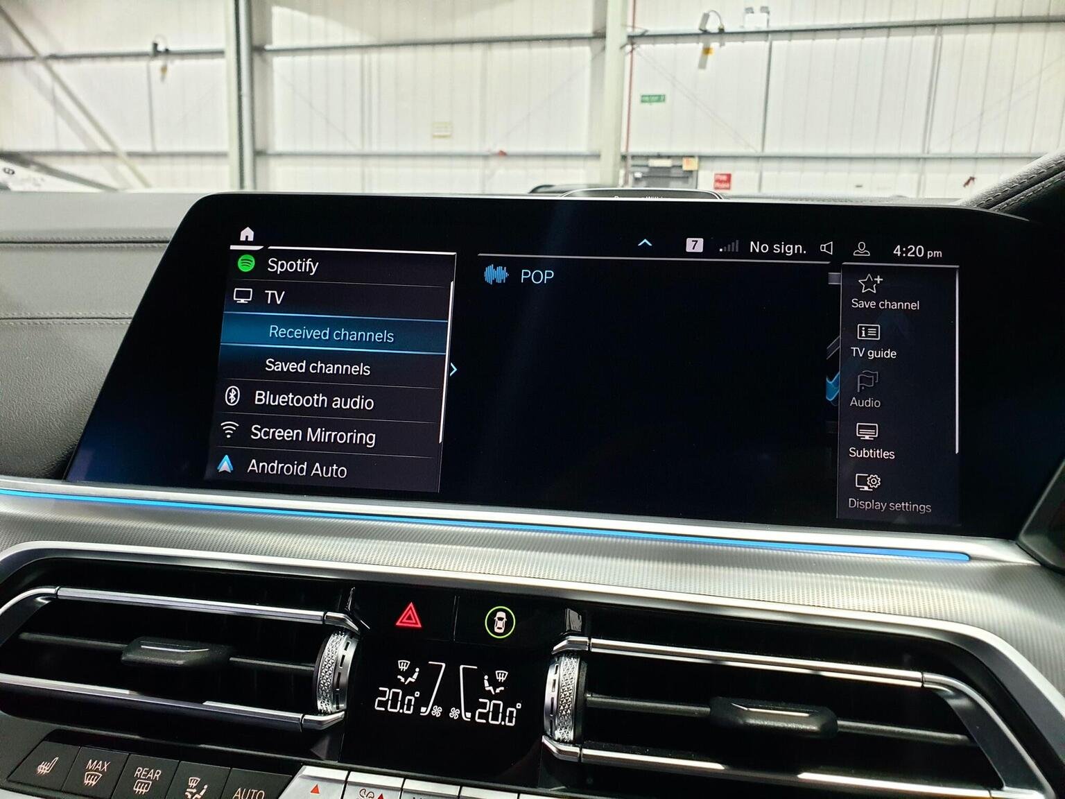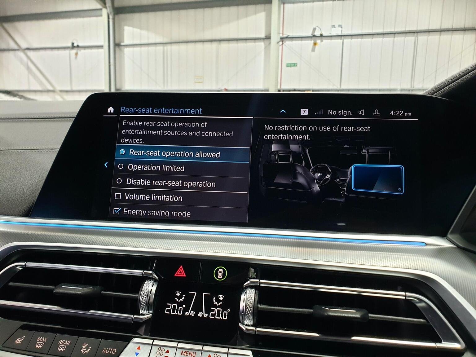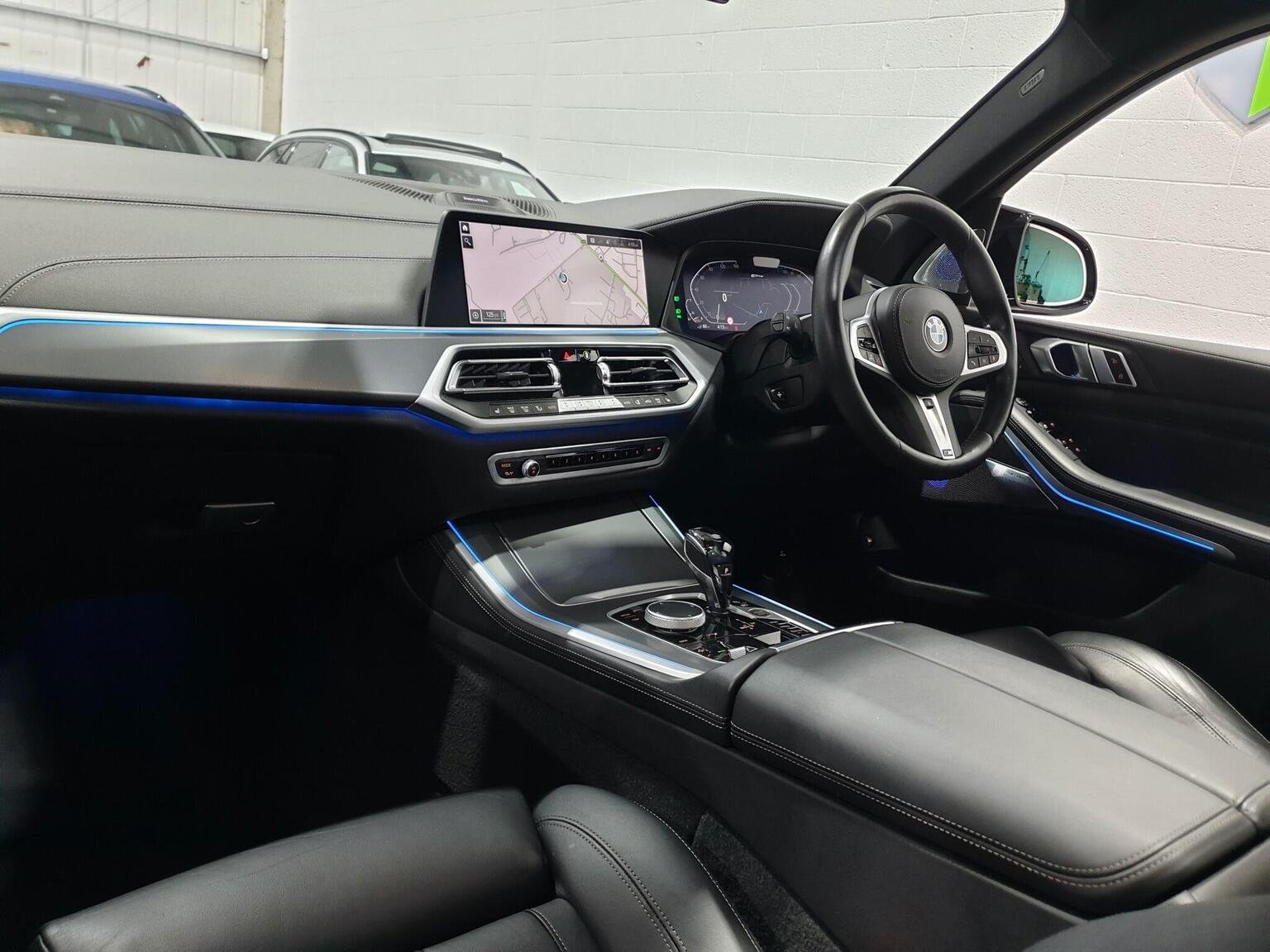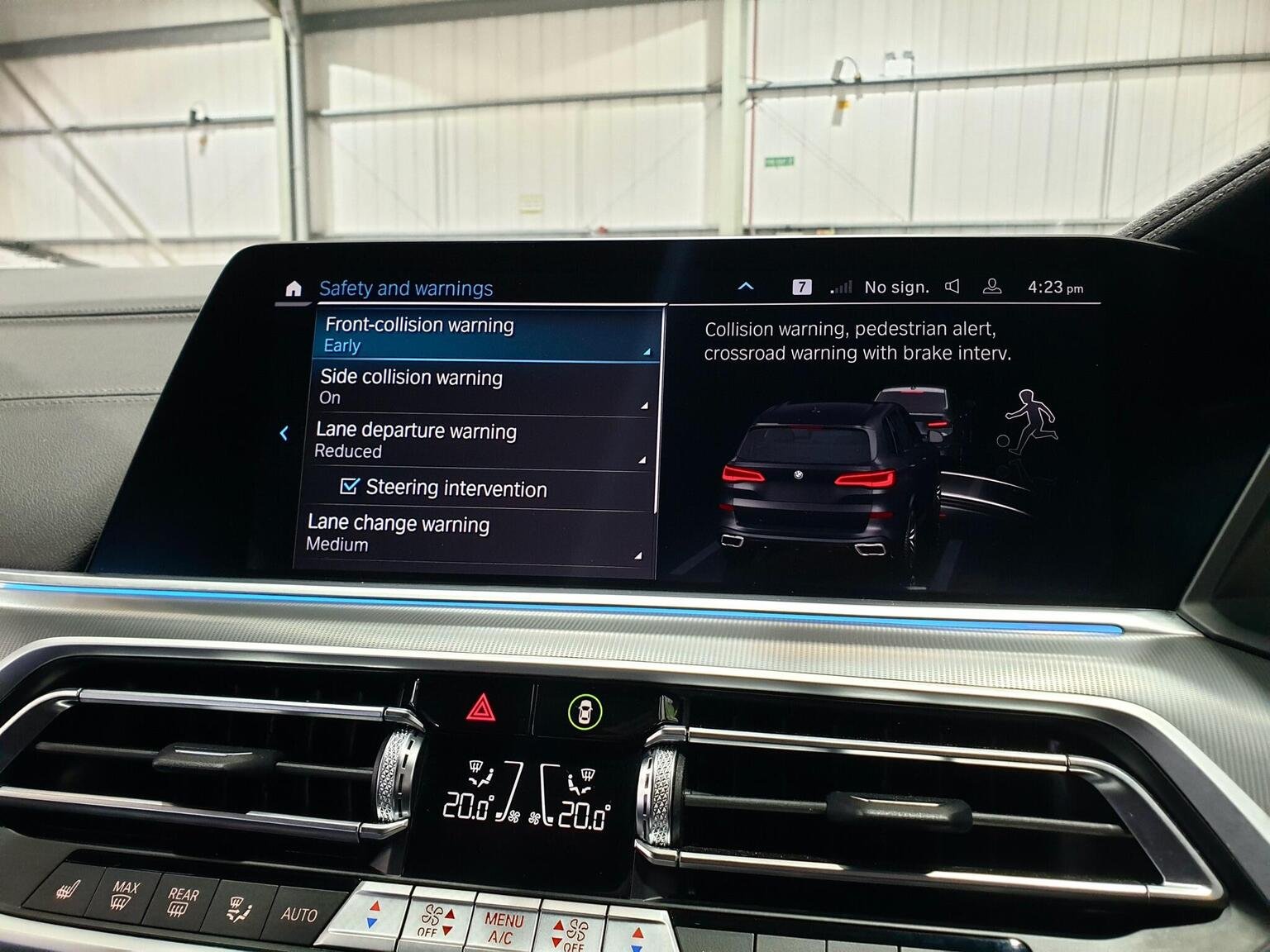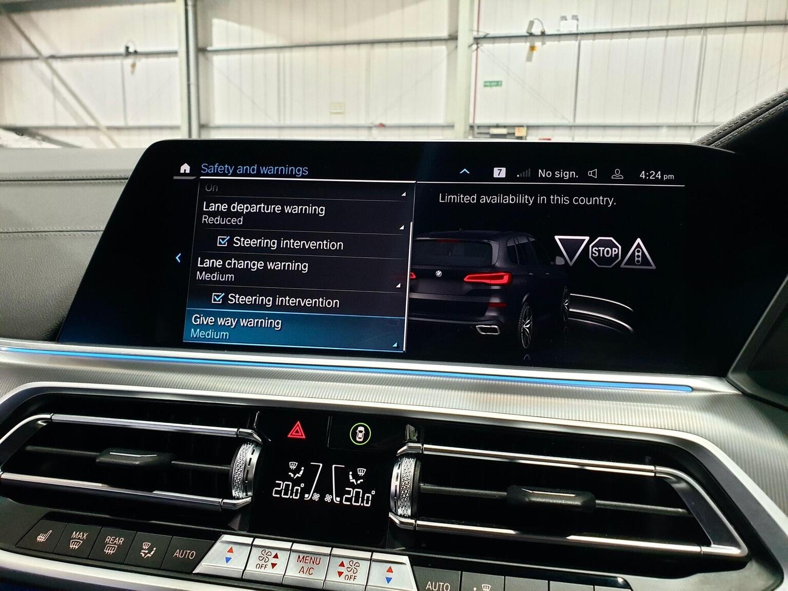 20GB Hard Disc Drive HDD Memory, 20in Alloy Wheels - M light Star-Spoke Style 740 M Bicolour with Mixed Tyres and Run Flat Tyres, AC Fast Charge Cable - 5 Metres, Acoustic Protection for Pedestrians, Active Air Stream Kidney Grille - High-Gloss Chrome, Active Guard Plus, Adaptive 2-Axle Air Suspension, Adaptive Air Flap Control Bar - High-Gloss Black, Air Conditioning - Automatic with 2.5 Zone Control, Airbags - Driver - Front Passenger- Rear and Side, Alarm System - Thatcham 1 with Remote Control and Engine Immobiliser, Ambient Interior Lighting, Armrest - Front and Rear Integrated into Door Trim, Attentiveness Assistant, Automatically Dimming Rear View Mirror, BMW Connected Package Professional, BMW ConnectedDrive Online Services, BMW Individual High-Gloss Shadowline, BMW Individual Roof Rails High-Gloss Shadow Line, BMW Legal Emergency Call, BMW Live Cockpit Professional, BMW TeleServices, Brake Force Display, Brake System, Brake-Pad Wear Indicator, Centre Armrest - Rear - Foldable with 2 Cupholders and Storage Compartment, Centre Console includes Storage Compartment, Centre Lock Switch - Driver and Front Passenger Door, Charging Flap Located on the Front Left Side, Child Seat ISOFIX Attachment - Outer Rear Seats - includes Top Tether, Closing System with Central Locking, Compartment in Front of Cupholder, Crash Sensor - Activating Central Locking Release - Hazard Warning Lights - Fuel Cut Off - Interior Lighting and Activation of the Safety Battery Clamp, Cruise Control with Brake Function, Cup Holders - Front x2 and Rear x2, DAB Tuner, DSC - Dynamic Stability Control - Stabilises the Vehicle in Extreme Situations - Controls Traction, Daytime Running Lights - LED, Deformation Zones - Front and Rear, Door Pockets - Front and Rear, Door Sill Inlays - BMW M Designation Illuminated, Double-Wishbone Front Axle, Drive Performance Control with ECO PRO - Comfort and Sport, Dynamic Brake Lights with LED Technology, EPS - Electric Power Steering with Servotronic, Electric Windows - Front and Rear with Open-Close Fingertip Control - Anti-Trap Facility and Comfort Closing Function, Electrical Steering Column with Adjustable Height and Length, Electro-Mechanical Parking Brake with Automatic Drive-Away Release and Auto-Hold Function, Enhanced Bluetooth Hands-Free Facility with Wireless Charging, Exhaust Tailpipes - Single - Left and Right - Chrome, Expanded Exterior Mirror Package, Exterior Mirror Housing - Body Colour, Favourite Buttons, First Aid Kit and Warning Triangle, Follow Me Home Headlight Function, Footwell Lights - Front, Front Grille Bars - Pearlescent Chrome, Head Airbags - For First and Second Row Seats, Head Restraints - Front Anti-Whiplash, Headlining - Anthracite, Heated Windscreen Washer Jets, HiFi Loudspeaker System, Instrument Panel in Sensatec, Interior Light - Rear Centre, Interior Trim - Aluminium Tetragon, Knee Airbag, LED Fog Lights, LED Headlights, LED Rear Lights, Light Inside Glove Compartment, Lockable Glove Compartment, Locking Wheel Bolts - Thatcham Approved, Luggage Compartment - Light, Luggage Compartment Floor Panel with Integral Storage Tray, M Aerodynamic Bodystyling, M Designation on Front Side Panels - Left and Right, M Leather Steering Wheel, M Specific Floor Mats Velour, M Specific Key, M Specific Pedals, M Specific Steering Wheel, M Sport Braking System, M Sport Package, Make-Up Mirror Lights, Mechanical Childproof Lock - Rear Doors, Multi-Function Controls for Leather Steering Wheel, Multifunctional Hooks, Non Smokers Package, OBC - On Board Computer, Oil Sensor For Level and Grade, Outer and Central Air Intakes on Front Bumper - High-Gloss Black with Pearlescent Chrome Finish, PDC - Park Distance Control - Front and Rear, Parking Assistant, Passenger Seat Airbag Deactivation - Front, Passive Protection for Pedestrians, Power Sockets 12v - 2x Centre Console - 1x Luggage Compartment, Rain Sensor with Automatic Headlight Activation and Windscreen Wiper Control, Reading Lights - Front, Safety Battery - Terminal Clamp, Seat Adjustment - Front Electric with Driver Memory, Seat Back with Flap Pocket, Seat Belts Front and Rear - Seat Belt Tensioner - Front and Outer Rear Seats - Belt Force Limit, Seat Heating for Driver and Front Passenger, Seat Occupancy Detection for Driver and Passenger Side, Side Elements - High Gloss Black, Side Impact Protection, Side Window Graphics - Satin Aluminium, Speed Limit Display, Speed Limiting Function, Split Folding Rear Seats 40-20-40 Configuration, Sport Seats for Driver and Front Passenger, Standard Charge Cable - 5 Metres, Start-Stop Toggle - Diamond-Shaped Trim Finisher in Pearl Chrome, Storage Tray and Compartment with Lid in Centre Console, Sun Visors with Illuminated Vanity Mirrors, TPMS - Tyre Pressure Monitoring System, Tailgate Automatic - Two Part Top-Hinged Section Which Can Be Opened Separately and Manual Bottom-Hinged Section, Third Brake Light - Spoiler, Toolkit Located in Luggage Compartment, Two Tone Horn, USB Connection - USB Type A 1.5A in Cupholder - USB Type C 3A in Centre Armrest, Welcome Light Carpet, WiFi Hotspot Preparation, X5 on Tailgate - Left, eDrive Button, iDrive Touch Controller with Shortcut Buttons, xDrive Designation on Tailgate - Right